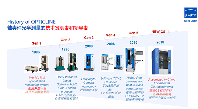 從1986年OPTICLINE發(fā)明全世界第一臺軸類件光學(xué)測量系統(tǒng)開始,該技術(shù)已經(jīng)以高水平的能力在全世界運行超過 30 年,這些光學(xué)測量系統(tǒng)體現(xiàn)了OPTICLINE在工業(yè)測量領(lǐng)域積累的豐富專業(yè)知識和長期經(jīng)驗。超過 2,500 個 OPTICLINE 測量系統(tǒng)正在全球各地使用,有著成功的運行記錄。