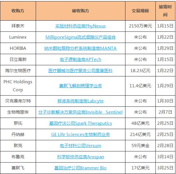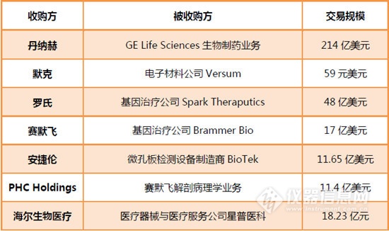 2019上半年交易額在1億美元以上的儀器企業并購案