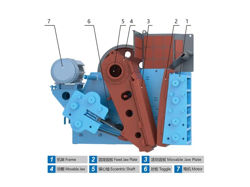 重型動顎總成采用鍛造的重型偏心軸、高質量重載滾動軸承, 有限元軟件優化的動顎體保證了動顎總成耐沖擊性和穩定性高;迷宮式密封、集中潤滑系統保證了軸承油脂不被污染、潤滑更加便捷, 使其運行時間更長。