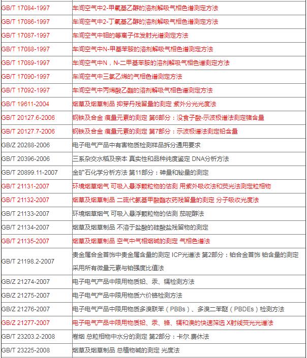 統(tǒng)計(jì)發(fā)現(xiàn),本批廢止的標(biāo)準(zhǔn)中約有200項(xiàng)儀器方法,主要為色譜、光譜、氣質(zhì)聯(lián)用分析方法,且以汽車(chē)行業(yè)車(chē)間空氣檢測(cè)為主。匯總?cè)缦拢?/span>