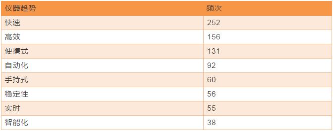 從統(tǒng)計中,我們還看到了用戶對于儀器創(chuàng)新的期盼。快速、高效、穩(wěn)定是分析儀器始終追求的優(yōu)質(zhì)性能,隨著現(xiàn)場檢測需求的增多,便攜式、自動化、手持式、實時、智能化被提到的頻率越來越高,廠商在宣傳新品時也往往用到這類詞匯。