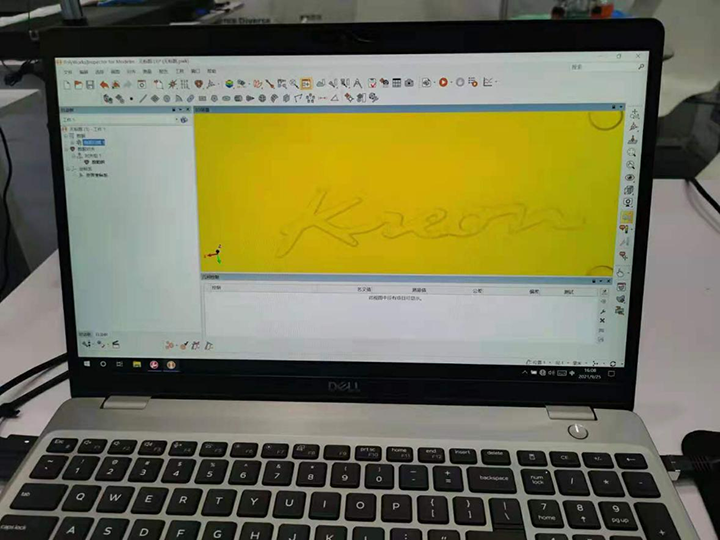 展會現場,法國科瑞朗KREON 關節臂三坐標測量機廣受客商青睞,這款設備配置Skyline wide 激光掃描頭,掃描精度9μm,現場應展會觀展客戶要求,鴻華科技有限公司技術工程師現場演示掃描樣品表面LOGO,并得到清晰的三維圖像。